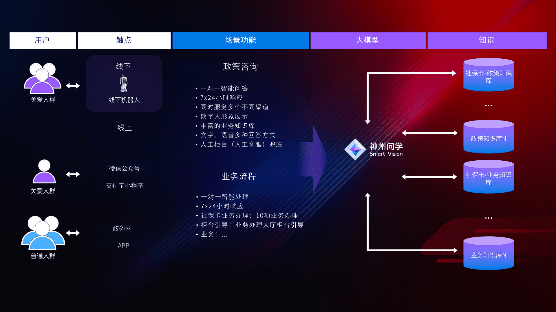 • 线上线下全覆盖:线上提供微信公众号、、支付宝小程序、、、、政务网、、、、app多种渠道,,,与线下机器人形成完整服务体系。。。